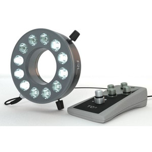 The extremely bright and versatile High Power LED Ring Light RL12 was developed for a wide range of applications in microscopy, production and industrial image processing. The 12 high-quality power LEDs of the ring light, which are housed in a compact metal housing, have a long service life and are characterised by their high light intensity. The RL12 LED ring light is available in many variants, allowing every user to find the right lighting in terms of brightness, working distance, light colour and optics. The modular design allows the LED modules to be replaced at the factory. With the help of extensive accessories, the ring light can also be adapted to individual needs and requirements. For example, there is a polarisation filter and various reduction rings for adjusting the inner diameter, allowing the LED power ring light to be attached to many instruments such as cameras or microscopes.