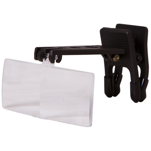 Levenhuk Zeno Vizor G0 Magnifying glasses are equipped with interchangeable lenses. If you want to increase the magnification power, just change the lenses. There are three available magnifying powers: 1.5x, 2.5x and 3.5x. The lenses are fixed with an easy holder clip, which firmly holds the magnifier in the selected position without causing any damage to the glasses frame.