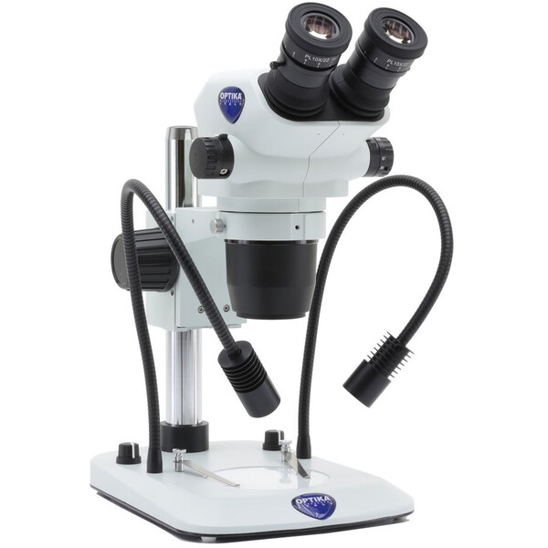 OPTIKA SZO Series represents a very compact Greenough stereo microscope with 6.72:1 zoom and 110mm working distance for professional environments and laboratories which allows the observation of samples without any particular preparation, yet producing incredibly crisp and detailed images. An extensive range composed by binocular and trinocular heads with 23mm field of view for a very wide peripheral view and comfortable posture even after several hours of operation. Trinocular heads enable simultaneous eyepiece and camera observation, opening new horizons and enabling a very practical and comfortable operation. Discover how easily an enhanced accuracy and repeatability can be achieved thanks to the click-stop zoom for precise and repetitive observations. An extremely wide stand selection gives the chance to create tailored stereomicroscope: choose among the several models available to cover every customers’ needs, in terms of illumination (including the state-of-the-art, exclusive X-LED³ incident light of 3.6W on selected models), arm extension (including overhanging stands) and focusing system. Special external illuminators and moving/heating stages are also available for specific applications. Keep in my mind the application, always: if you are soldering a printed circuit board, it may be more important to have a long working distance; if you are counting items, then a large field of view will be of great assistance.