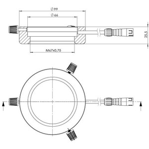 Las series RL4 y RL5 están diseñadas principalmente como iluminación incidente para microscopios. El campo de trabajo de los iluminadores anulares está seleccionado de tal manera que el foco se encuentra a la distancia típica entre el objetivo y la platina del microscopio estándar. Ambas series están disponibles con dos diámetros interiores, por lo que hay un modelo adecuado para todos los tipos de microscopios habituales.
