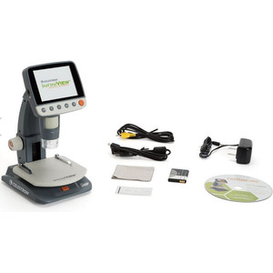 Das professionelle Celestron TetraView LCD-Digitalmikroskop ist ein Touchscreen-LCD-Mikroskop mit erweiterten Funktionen zu einem vernünftigen Preis. TetraView verfügt über vier voll achromatische Objektive, einen vollmechanischen Tisch, einen 4,3" TFT-Vollfarb-Touchscreen, einen 5MP CMOS-Sensor und eine 2GB SD-Karte zur Speicherung Ihrer Fotos und Videos. Die Aufnahme von hochauflösenden Bildern und Videos von Objektträgern war noch nie so einfach: Der LCD-Bildschirm lässt sich um 180° drehen, so dass Sie Ihre Aufnahmen mit anderen teilen können. Für ein noch größeres Publikum nutzen Sie den TV-Ausgang zur Darstellung auf einem Fernseher oder Projektor. Mit einer Vergrößerung von 40 bis 400x (1600x mit Digitalzoom) ist TetraView ideal für die Betrachtung einer Reihe von Zellproben auf Dias. Das TetraView-Mikroskop eignet sich hervorragend für den anspruchsvollen Profi oder Hobbybastler und ist ein hervorragendes Werkzeug für Laboratorien, Schulen, wissenschaftliche Forschung und mehr.